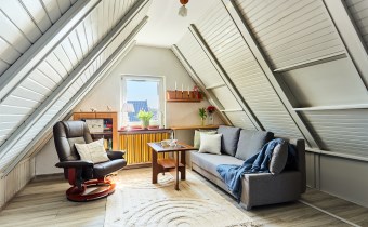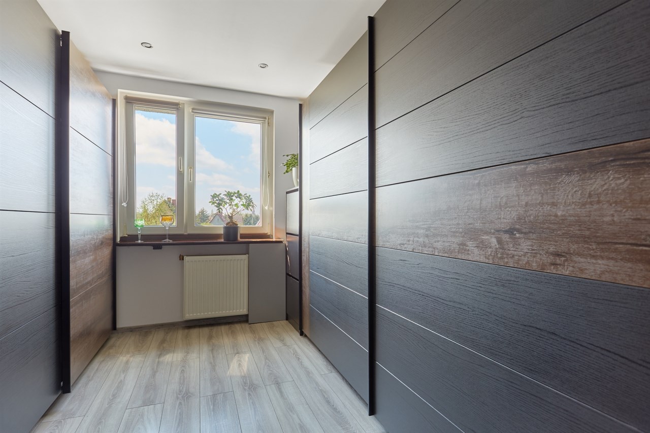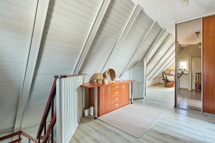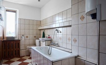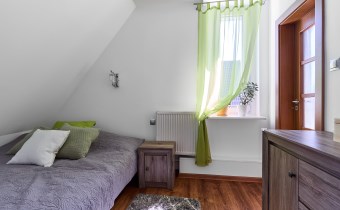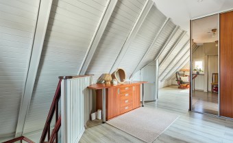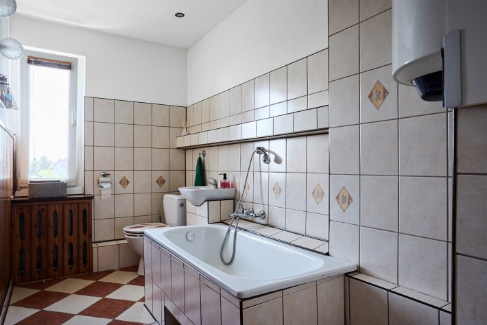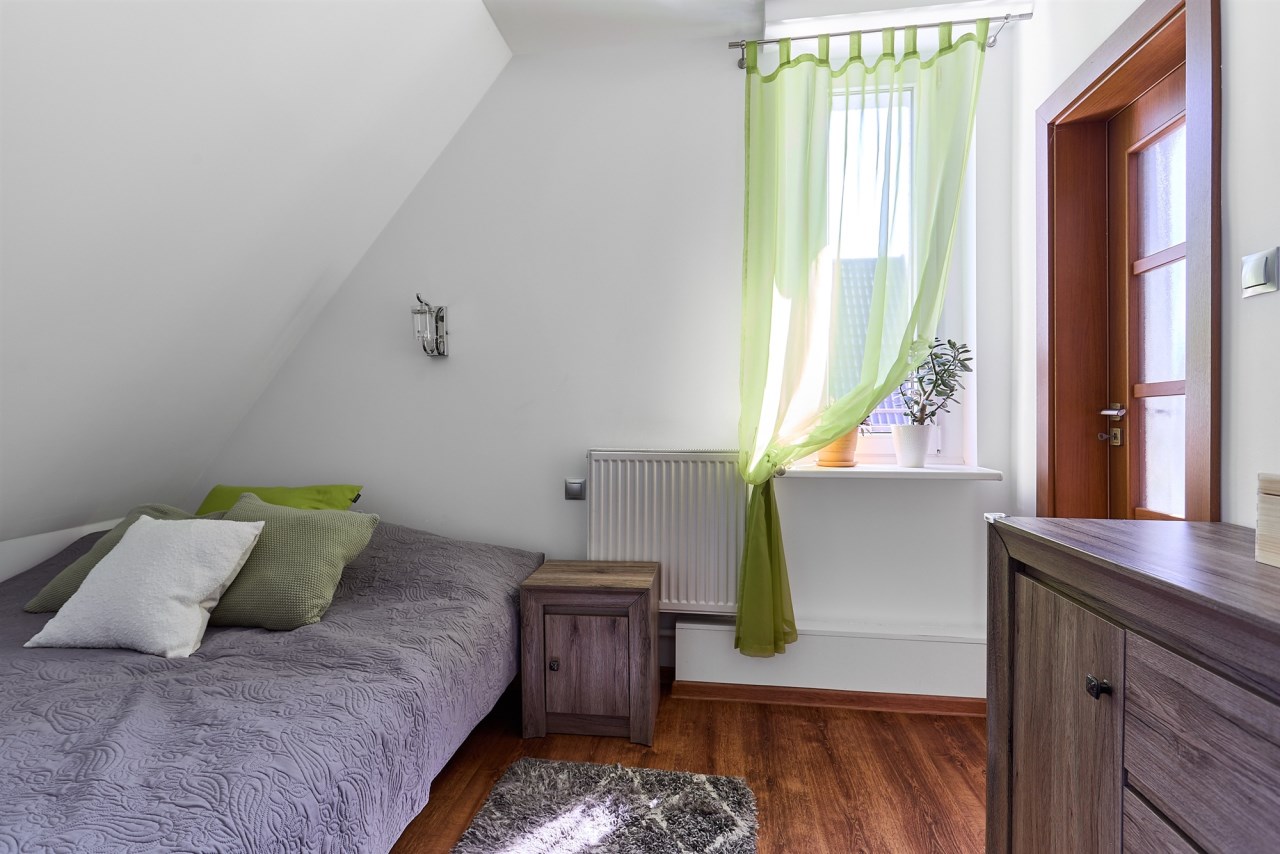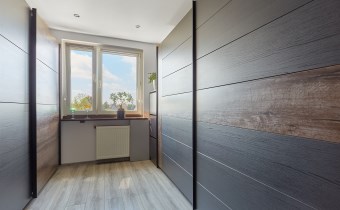 - na poddaszu: 2 pokoje (jeden pełni obecnie funkcję garderoby), korytarz, łazienka z wanną, schowek