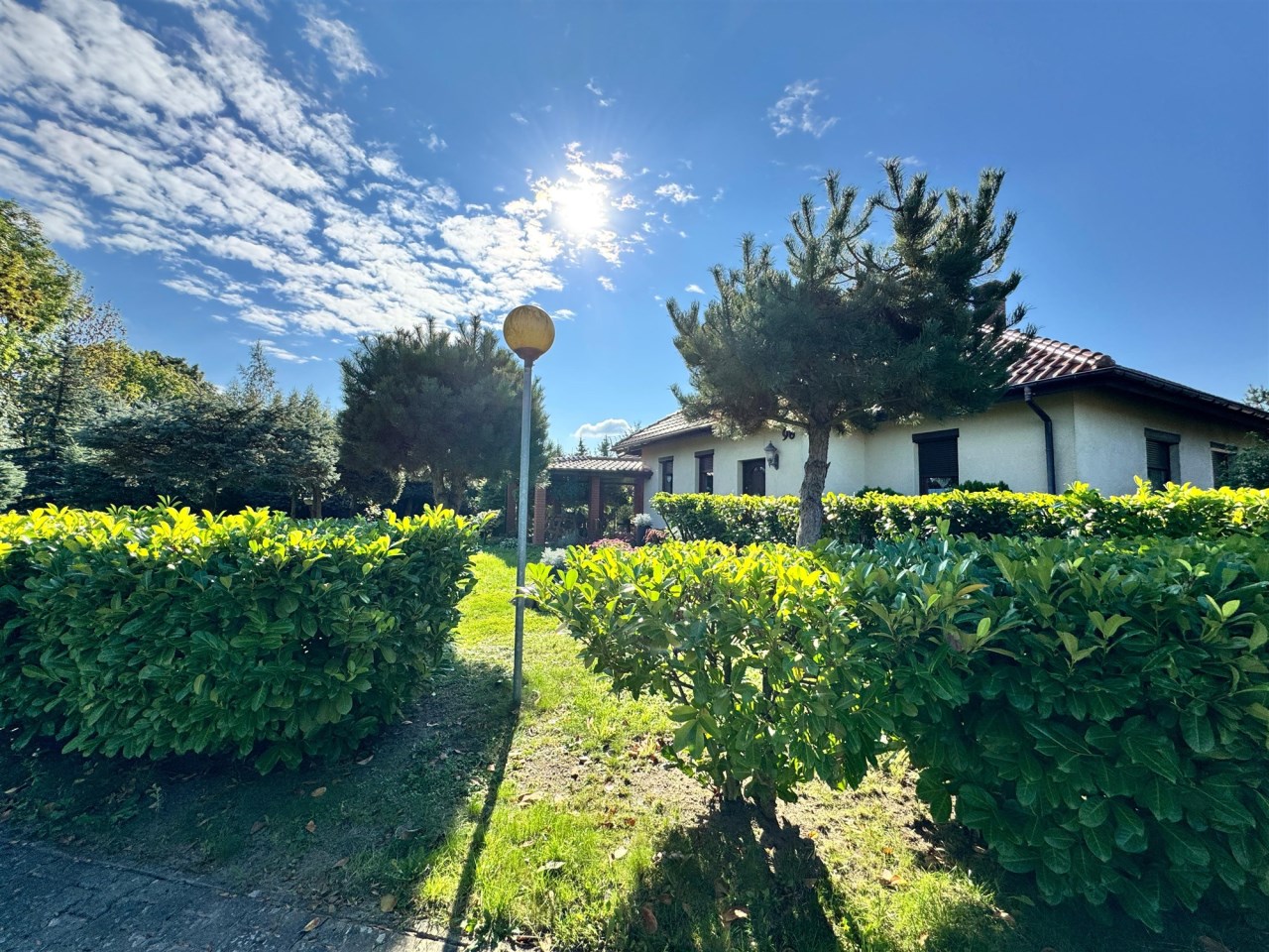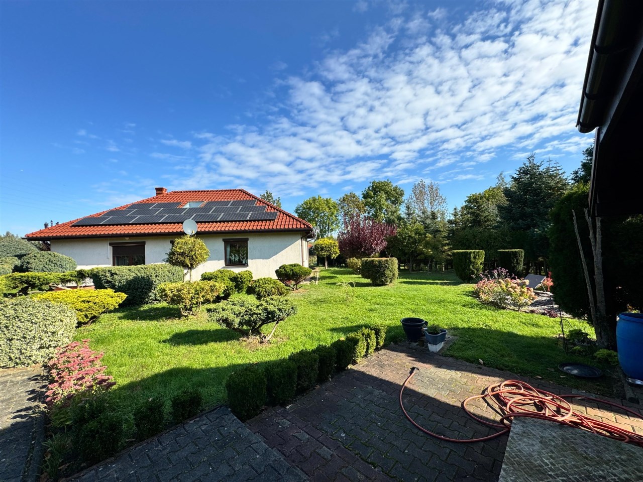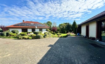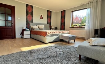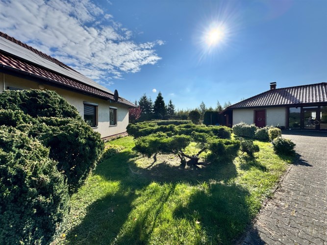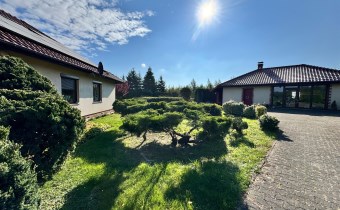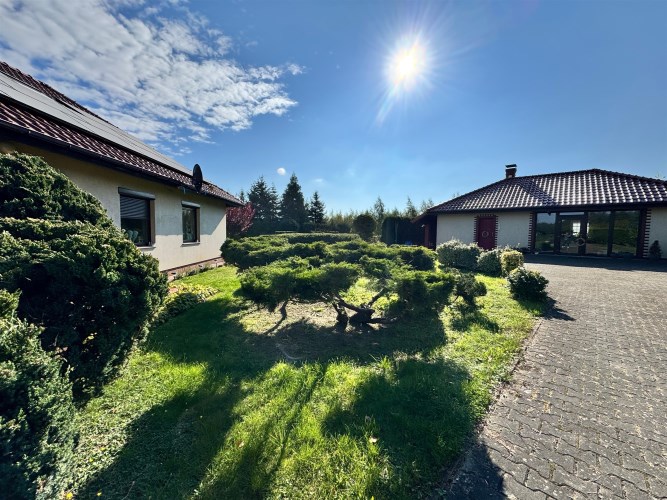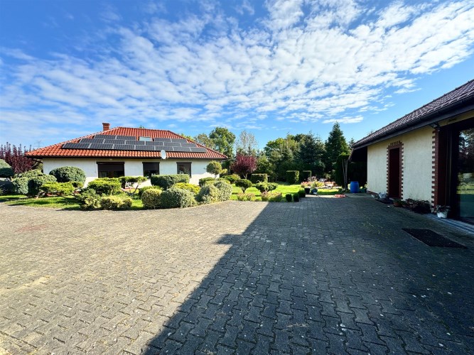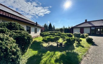 Budynek dodatkowy na działce (garażowo-gospodarczy) budowany jako garaż, obecnie zaadoptowany na mieszkalny (można przywrócić pierwotną funkcję zdejmując okna bo brama elektryczna jest zamontowana). Znajdziemy tu także przestrzeń na antresoli jako cześć sypialna. Dodatkowo jest łazienka i kuchnia oraz piwnica w której jest umieszczony cały system ogrzewania i filtry.