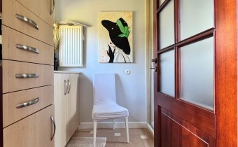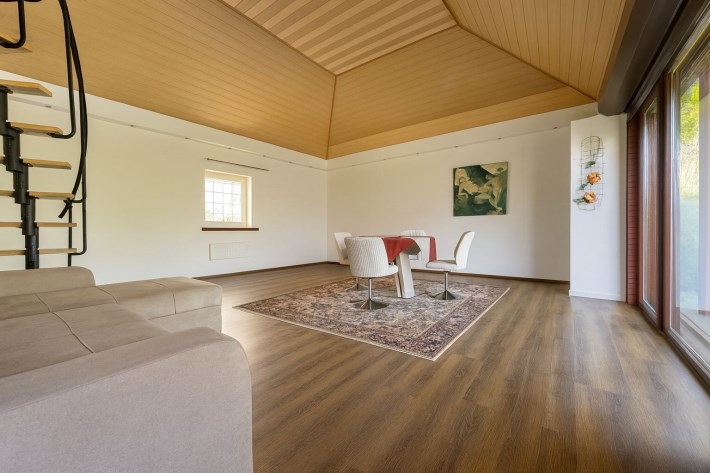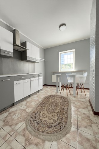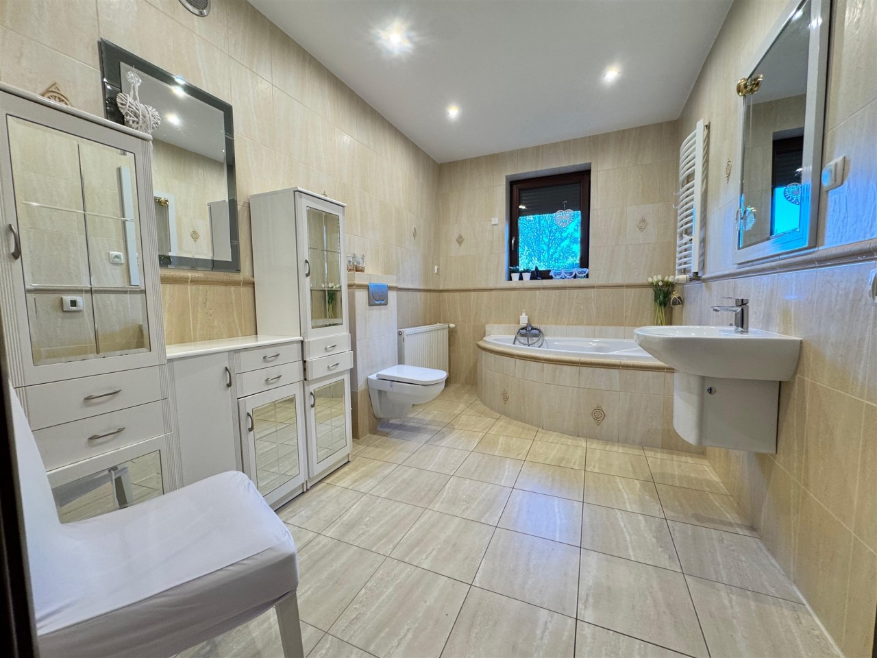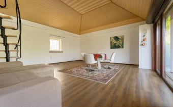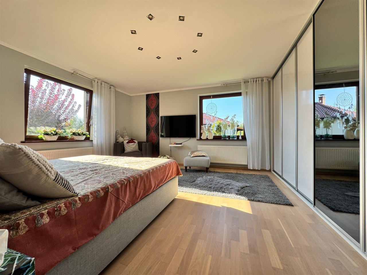 Budynek dodatkowy na działce (garażowo-gospodarczy) budowany jako garaż, obecnie zaadoptowany na mieszkalny (można przywrócić pierwotną funkcję zdejmując okna bo brama elektryczna jest zamontowana). Znajdziemy tu także przestrzeń na antresoli jako cześć sypialna. Dodatkowo jest łazienka i kuchnia oraz piwnica w której jest umieszczony cały system ogrzewania i filtry.