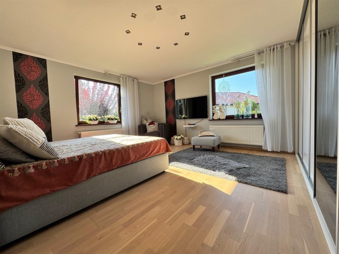 Na sprzedaż dom wolnostojący położony w prestiżowej części Gryfina na Górnym Tarasie. To idealna propozycja dla osób poszukujących komfortowego i funkcjonalnego domu z dużą działką, w spokojnej okolicy, a jednocześnie z szybkim dostępem do centrum miasta. Nieruchomość została solidnie wybudowana w 2006 roku, a w ostatnich latach zyskała szereg nowoczesnych i energooszczędnych udogodnień, dzięki czemu jest gotowa do zamieszkania bez dodatkowych nakładów.