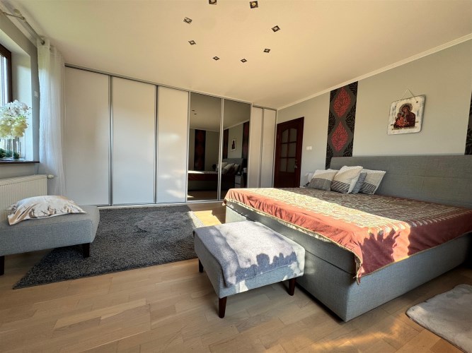 sypialnia z ogromną szafą w zabudowie– 25 m²