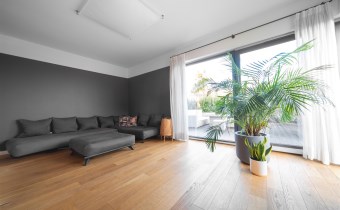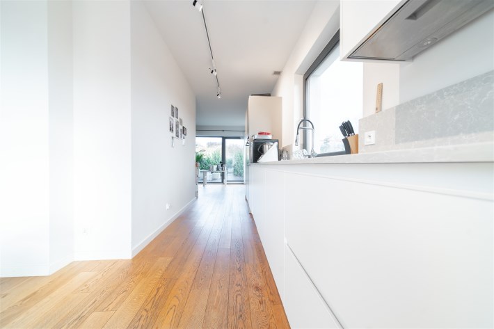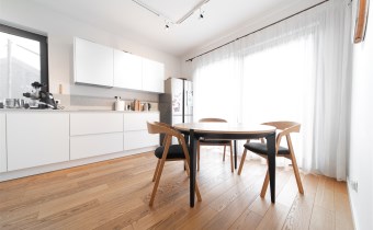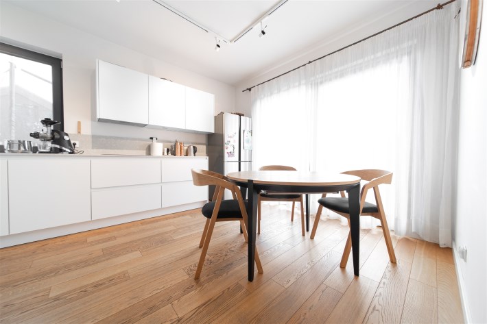 podłogi z drewna dębowego, drewniane drzwi oraz zabudowy stolarskie.