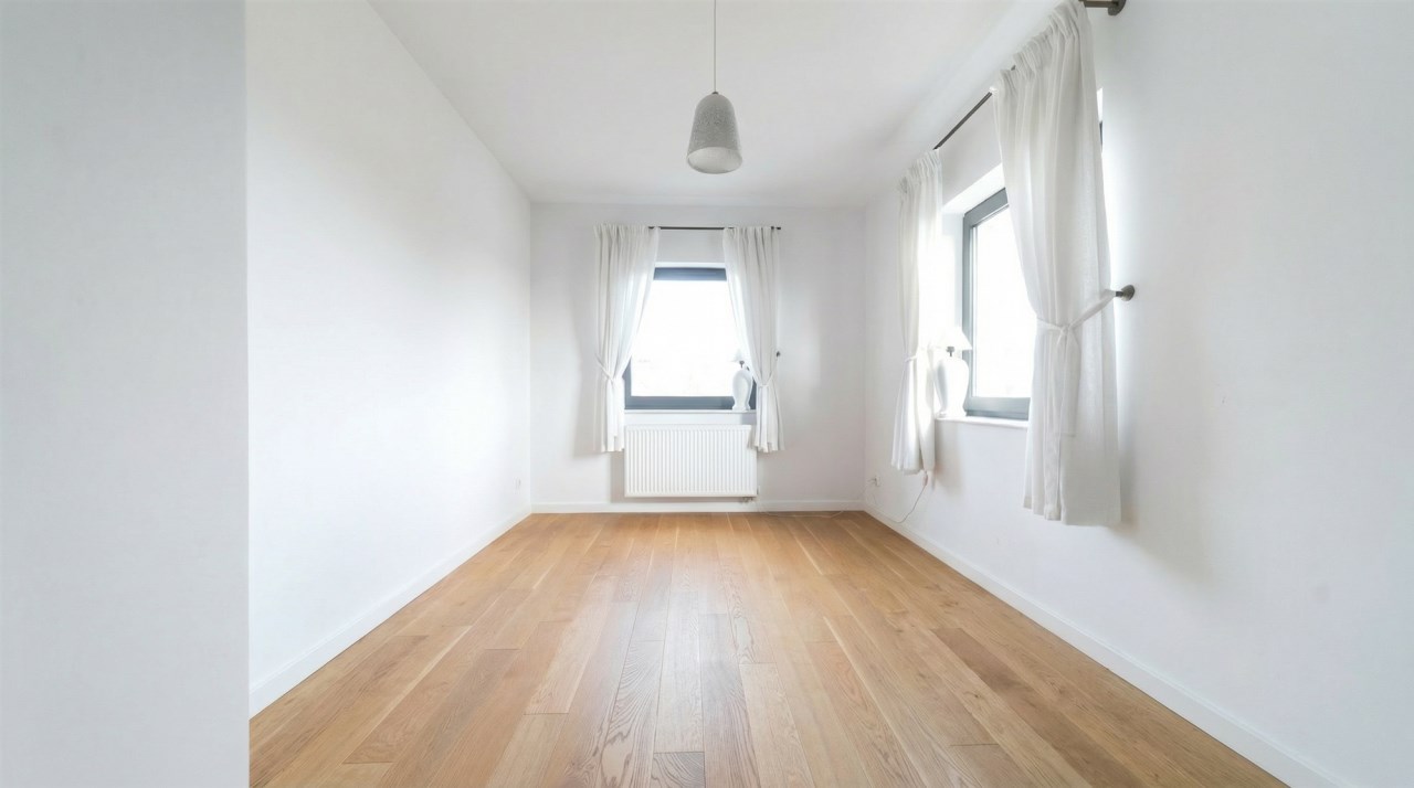 podłogi z drewna dębowego, drewniane drzwi oraz zabudowy stolarskie.