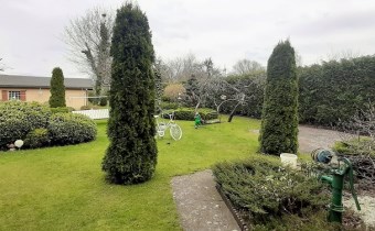 W terenie posesji jest posadowiony drugi budynek- garaż dwustanowiskowy z kanałem (razem 4 miejsca garażowe). Cała działka ładnie zagospodarowana z miejscem do biesiadowania, z nasadzeniami.