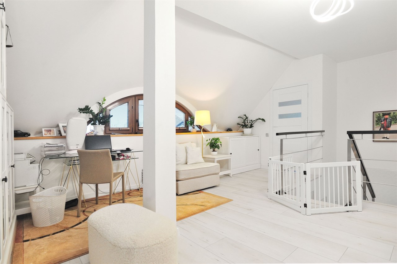 Na parterze: salon z kominkiem , kuchnia , pokój/gabinet do pracy, łazienka z prysznicem, obszerne pomieszczenie gospodarcze oraz garaż.