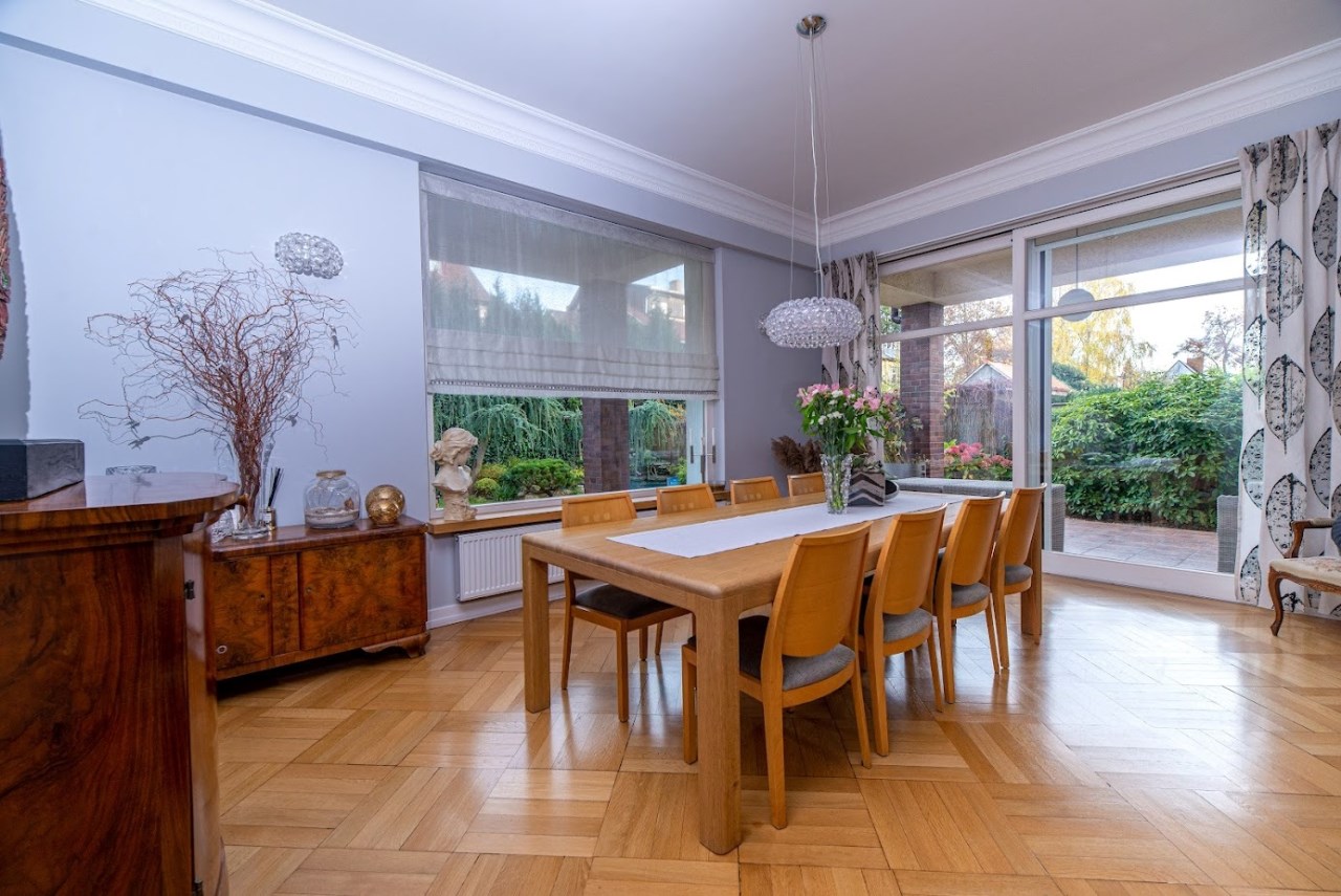 Ta poniemiecka willa w stylu Art Deco o powierzchni użytkowej 297 m² (powierzchnia całkowita 447 m²) z garażem o powierzchni 35 m² została kompleksowo odrestaurowana z wykorzystaniem materiałów najwyższej jakości, z zachowaniem oryginalnego charakteru i ponadczasowej elegancji.