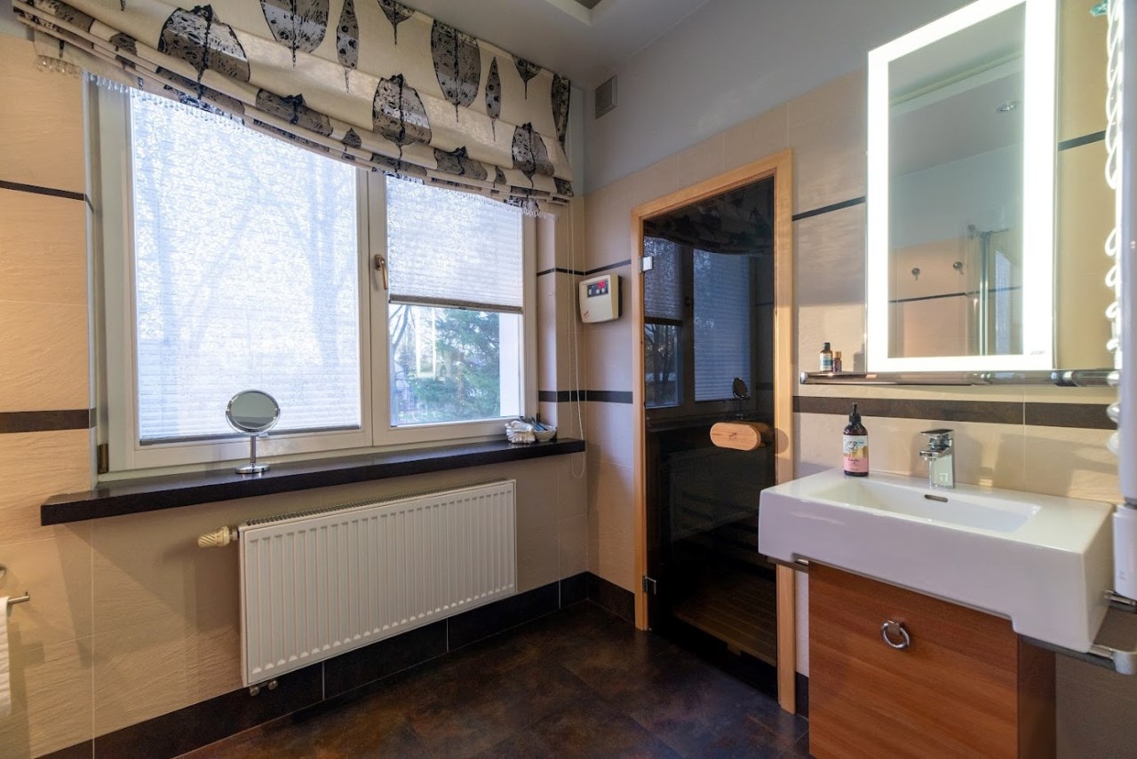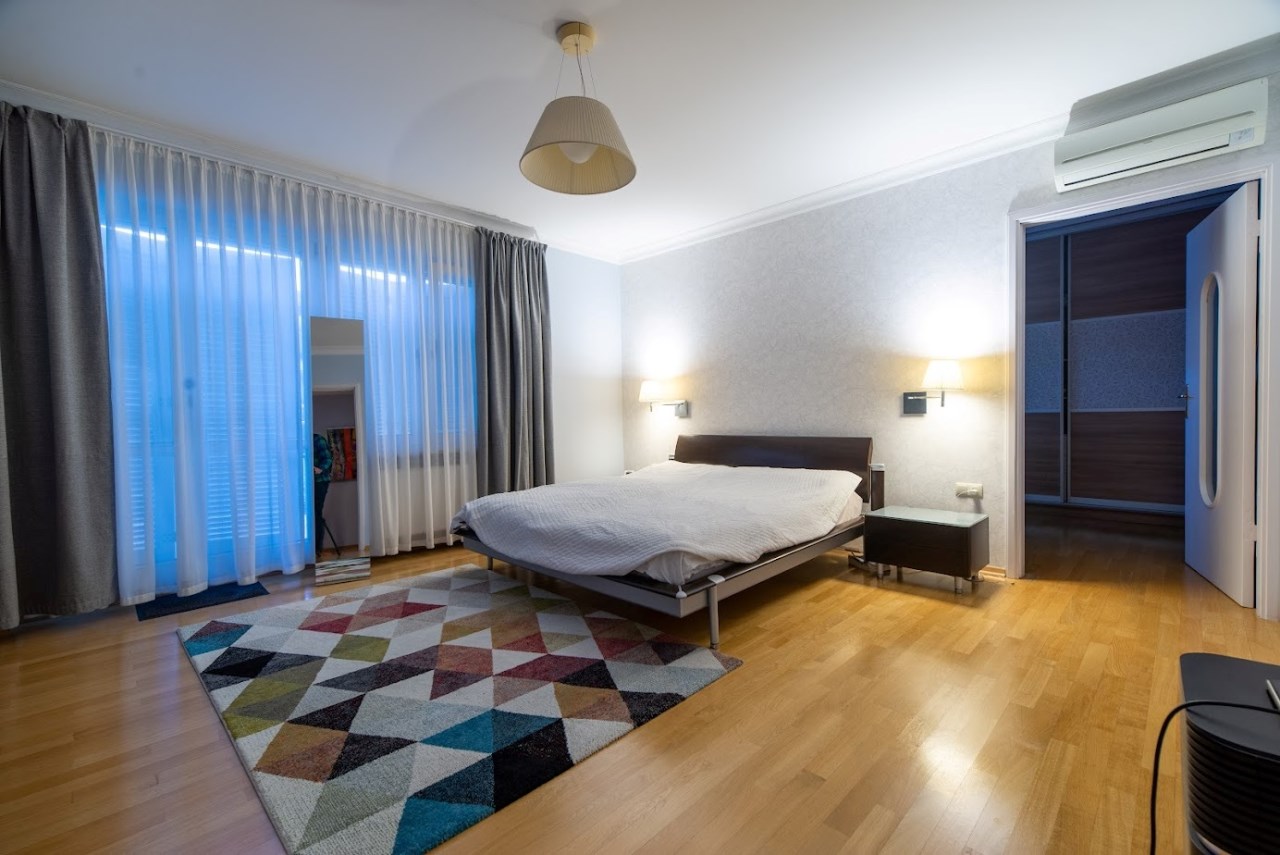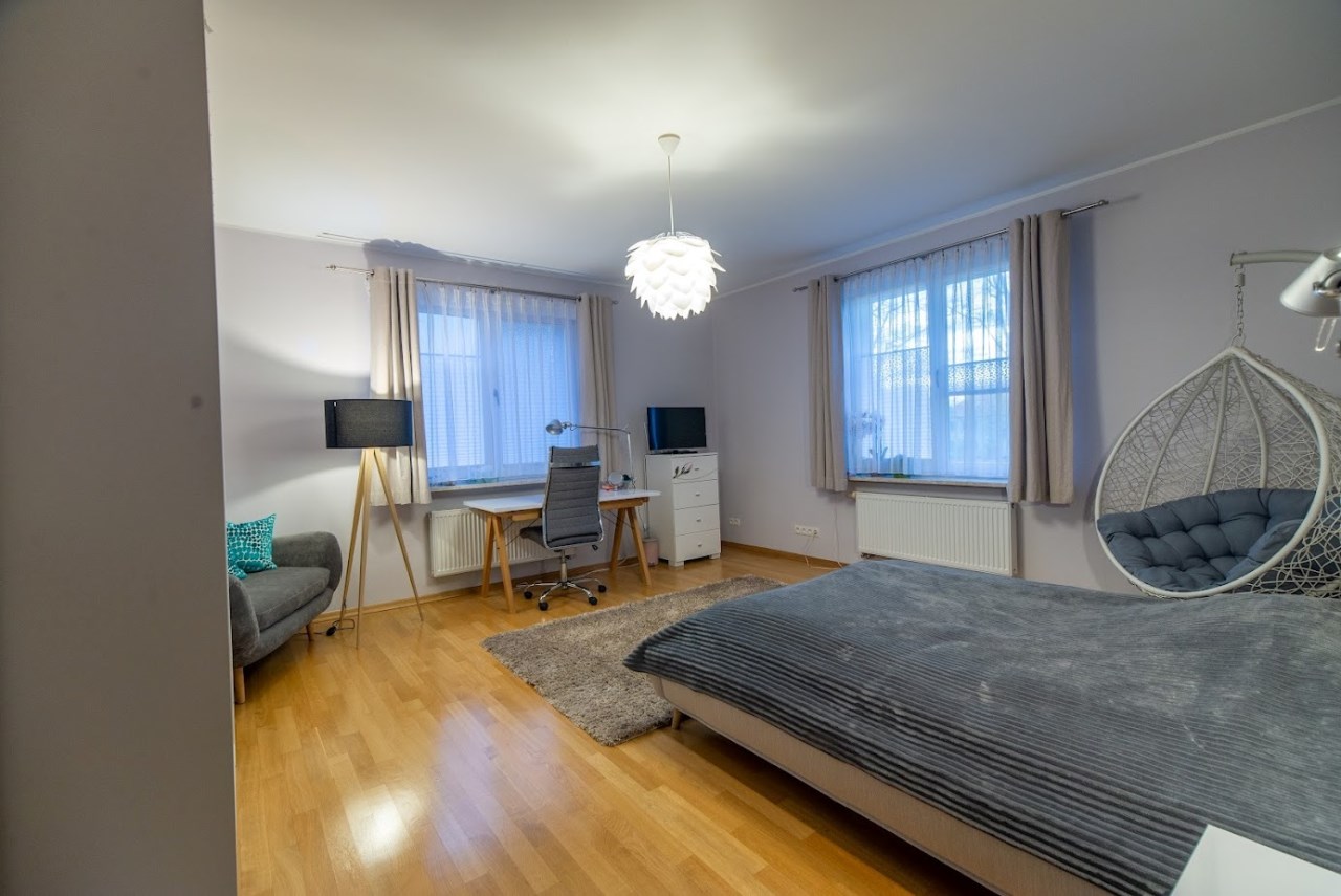 - Sypialnia typu master bedroom (z klimatyzacją) z prywatnym salonem kąpielowym, dużą garderobą i wyjściem na taras,
