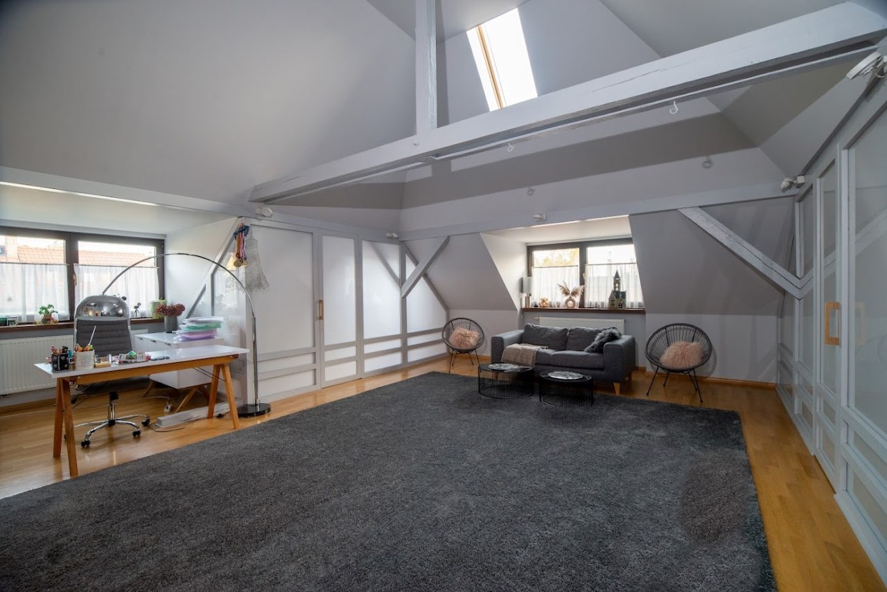 - Otwarta, klimatyczna przestrzeń zaadaptowana na część mieszkalną,