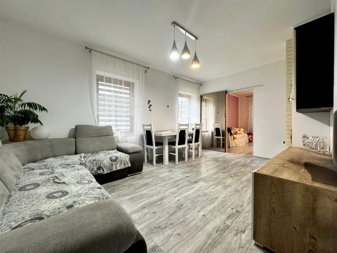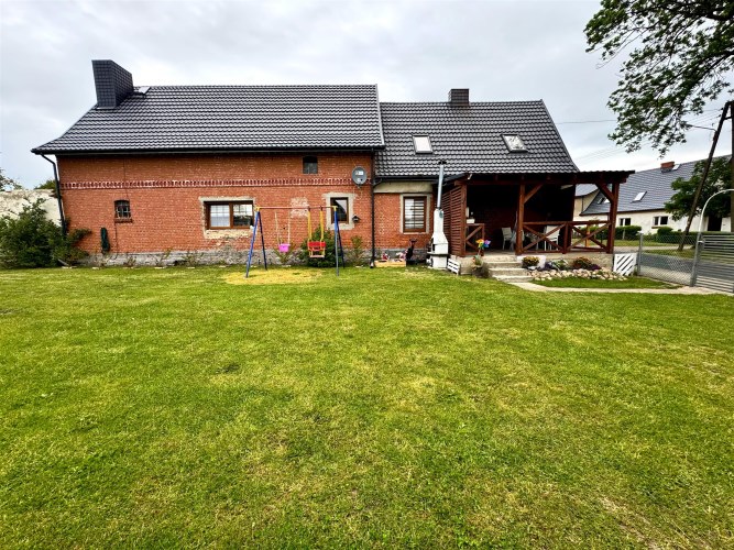 Sprzedawany dom został wybudowany około 1935 roku, obecnie całkowicie wyremontowany niespełna dwa lata temu. Zostały wymienione instalację oka, wylane posadzki, wymieniony i ocieplony dach, a także wszelkie inne roboty które stworzyły praktycznie nowy dom! Obecni właściciele korzystają jedynie z parteru domu, poddasze (ok. 55m2) zostało przygotowane do adaptacji i obecnie służy jako magazyn i siłownia, w razie potrzeby nowych nabywców można tworzyć tam dodatkową przestrzeń mieszkalną lub użytkową wg potrzeb. Dodatkowo jest jeszcze drugi strych ok. 75m2, który można wykorzystać na dowolne cele tym bardziej, że ma niezależne wejście z zewnątrz. kolejnym atutem jest kotłownia, która może służyć jako kolejne pomieszczenie idealne na przechowywanie, kotłownia ma wysokość około 6m i stanowi integralną część z domem lecz z osobnym wejściem z zewnątrz. Część mieszkalna to powierzchnia około 105m na co składają się