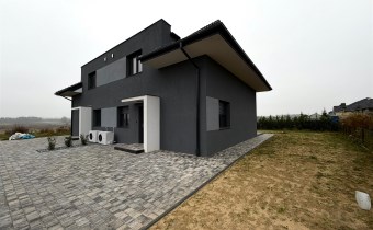 Ocieplenie - styropian grafitowy 20 cm, dachówka ceramiczna Roben, pompa ciepła, dach ocieplony pianą PUR, poddasze podłoga w OSB, sufity na górze wykończone w płytach gk, założone kontakty i włączniki w kolorze białym, rolety zewnętrzne, w pełni wykończona kotłownia w gresie, wykonane gładzie, położony polbruk, zrobione tarasy i podjazdy.