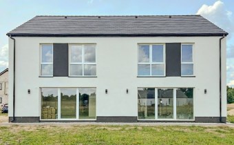 Każdy z dwóch lokali zajmuje 375 m2 zagospodarowanej działki, która zapewnia prywatność oraz przestrzeń do relaksu i rekreacji. Każdy lokal o powierzchni 99,64 m2 składa się z przestronnego salonu połączonego z kuchnią, czterech jasnych pokoi, dwóch łazienek oraz dodatkowego, ocieplonego poddasza o powierzchni 17 m2, idealnego na przechowywanie lub dodatkową przestrzeń mieszkalną.