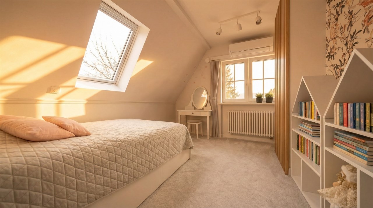 - przestronny salon ze świetlikiem dzięki czemu przestrzeń jest pięknie doświetlona