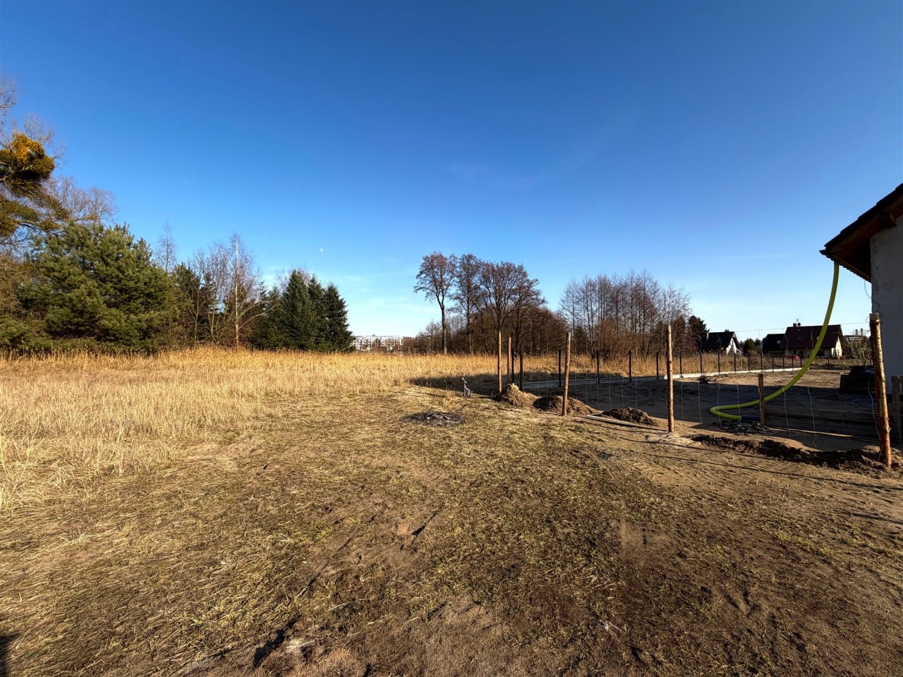 Nieruchomość zlokalizowana jest zaraz przy nowo powstających budynkach, nieopodal ogródki działkowe, oraz droga asfaltowa. Dojazd do działki możliwy z dwóch stron. Idealne położenie względem stron świata tj. południe ogród.