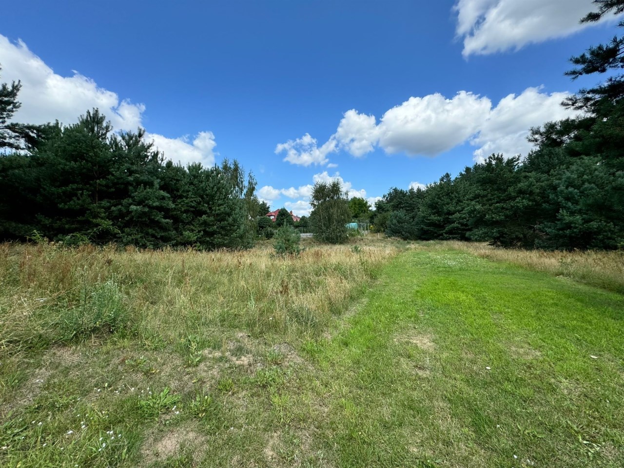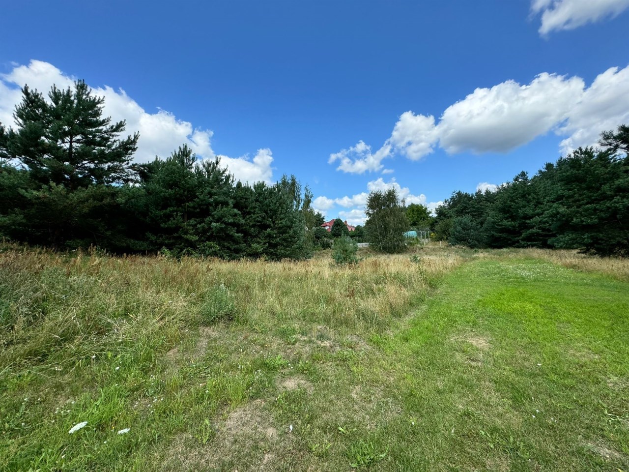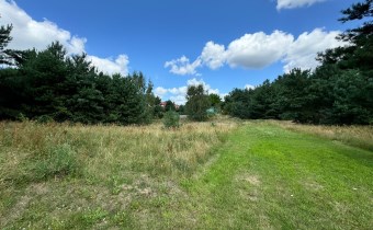 Na działce znajdują się drzewa iglaste, a sama działka graniczy z działkami pełnymi drzew sprawiające wrażenie otaczającego lasu.