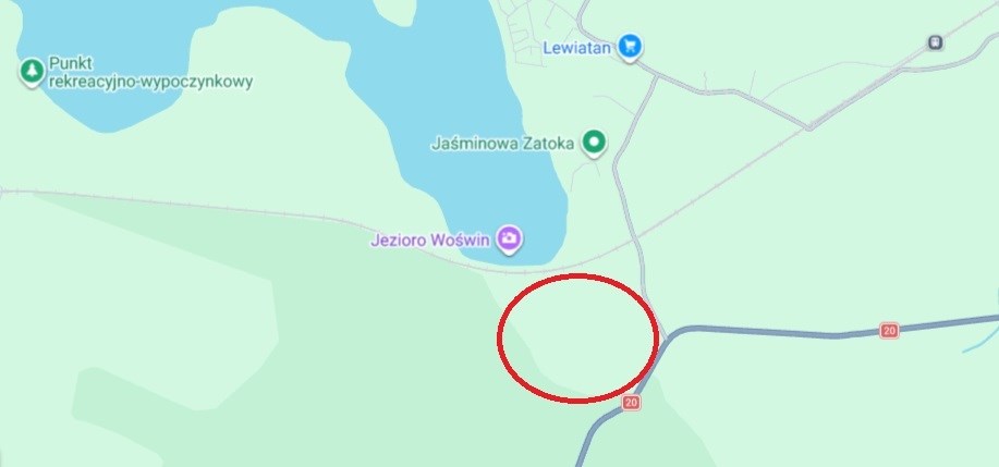 W odległości około 500m jest plaża nad jeziorem Woświn oraz zabudowania rekreacyjne a zabudowania mieszkalne wsi Cieszyno około 1km.