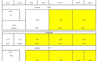 Nieruchomość podzielona na 9 pomieszczeń biurowych od 15,39 – 32,03 m2, dwie toalety oraz osobne pomieszczenie kuchenne.