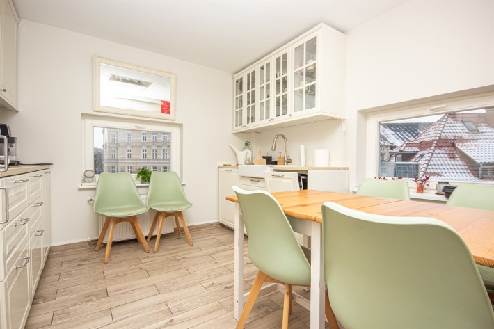 - w pełni wyposażony aneks kuchenny z miejscem do jedzenia i odpoczynku