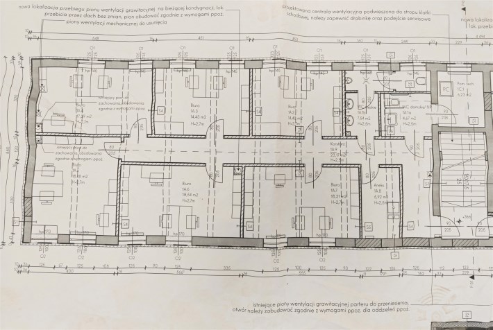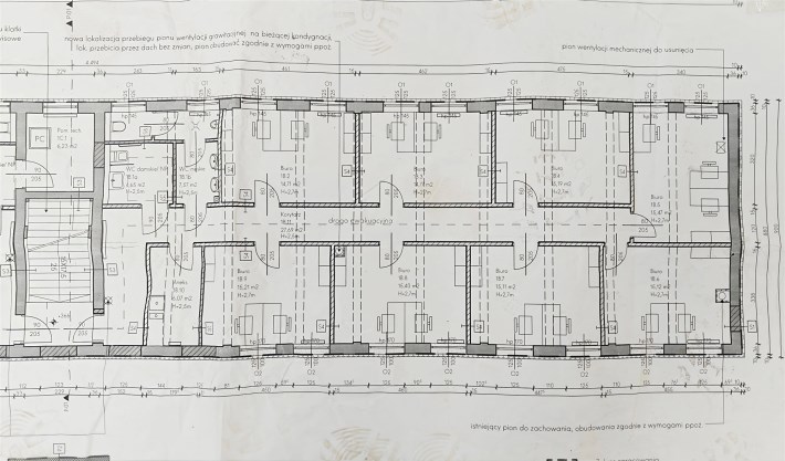 Dodatkowo istnieje możliwość wynajęcia kolejnego skrzydła budynku o powierzchni 165 m², co daje łącznie ok. 300 m² powierzchni biurowej. Idealne rozwiązanie dla większych firm lub działalności wymagających większej przestrzeni.
