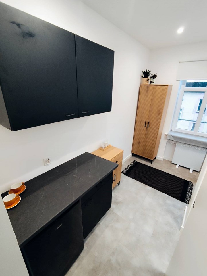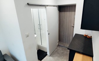 Lokal wykorzystywany mieszkalnie o powierzchni 8,54m2 na 3 piętrze w kamienicy na Niebuszewie.Lokal ma statut lokalu niemieszkalnego ale jest przygotowany pod wynajem. Mieszkanie składa się z małej łazienki z WC oraz pomieszczenia ogólnego. Stan- po remoncie generalnym. Podgrzewanie wody i ogrzewanie elektryczne co jest wystarczające przy tam małym lokalu. Wyposażenie stanowią szafki, łóżko wystarczające to pobytu singla. Łazienka z kabiną, sedesem i umywalką. Podłogi z gresu, okna PCV . Koszty utrzymania 99zł/m + opłaty licznikowe.