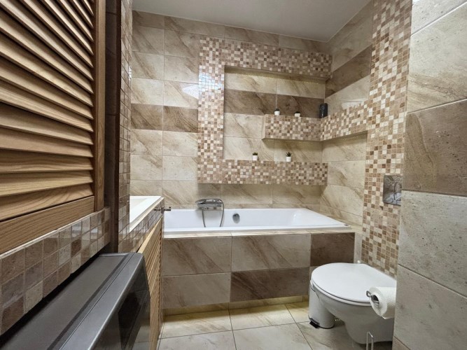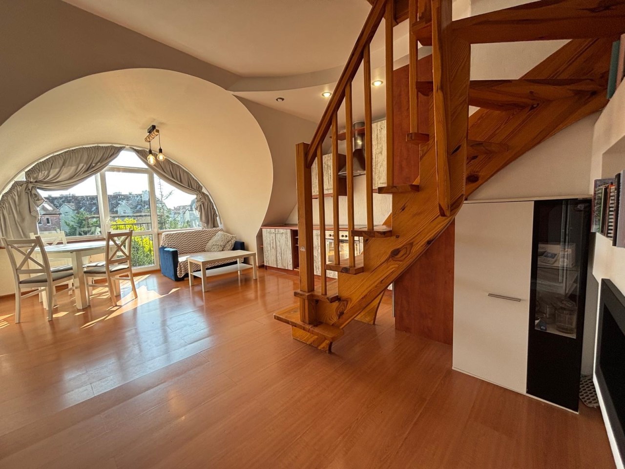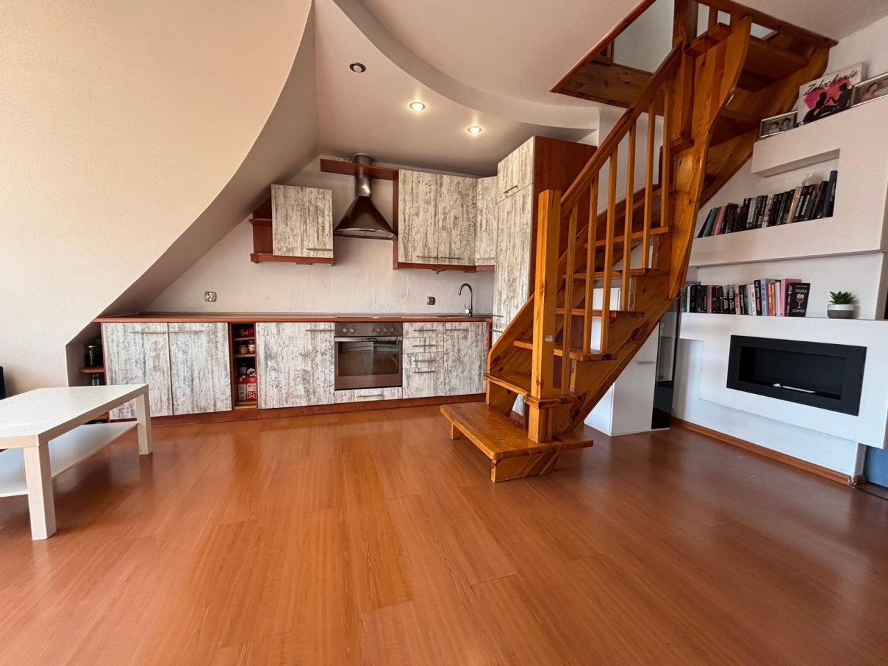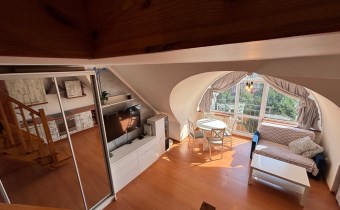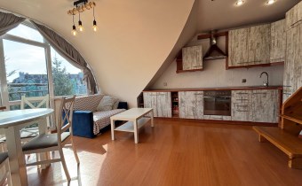 • Poziom I: przestronny salon z aneksem kuchennym, sypialnia, łazienka z WC