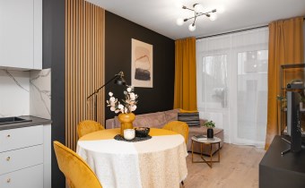Wnętrze jest w pełni umeblowane i wyposażone w niezbędne sprzęty AGD i RTV, takie jak zmywarka, lodówka, piekarnik, płyta grzewcza, pochłaniacz, pralka oraz telewizor. Dzięki temu nowy właściciel może wprowadzić się od razu, zabierając jedynie osobiste rzeczy. Mieszkanie może również stanowić atrakcyjną opcję inwestycyjną, gotową do wynajmu bez dodatkowych nakładów.