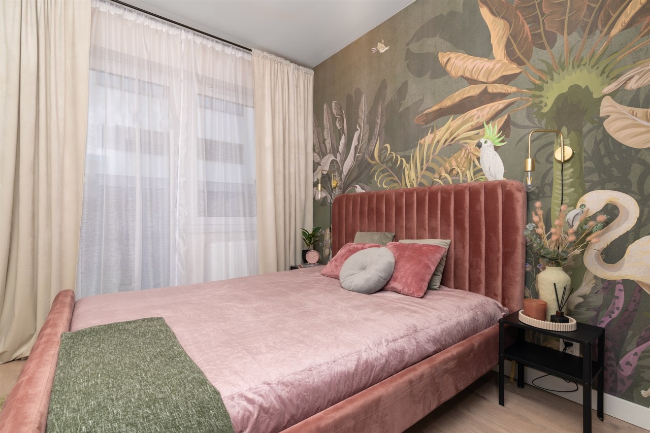 Mieszkanie składa się z pokoju dziennego z aneksem kuchennym, sypialni, przedpokoju oraz łazienki. Z obu pokoi można wyjść na przydomowy ogródek o powierzchni 20 m², który daje możliwość relaksu na świeżym powietrzu.