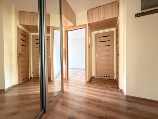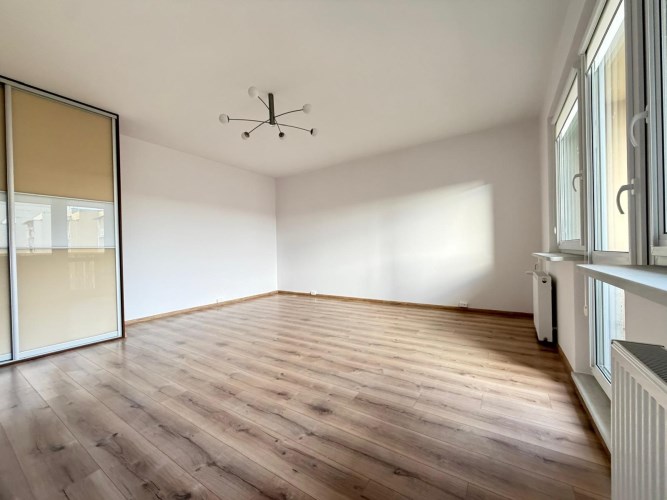 • Funkcjonalny rozkład: Przestronny salon (ok. 25 m²) z wyjściem na duży balkon (7 m²), oddzielna sypialnia (ok. 12 m²), widna kuchnia, łazienka, osobne WC oraz pojemny przedpokój