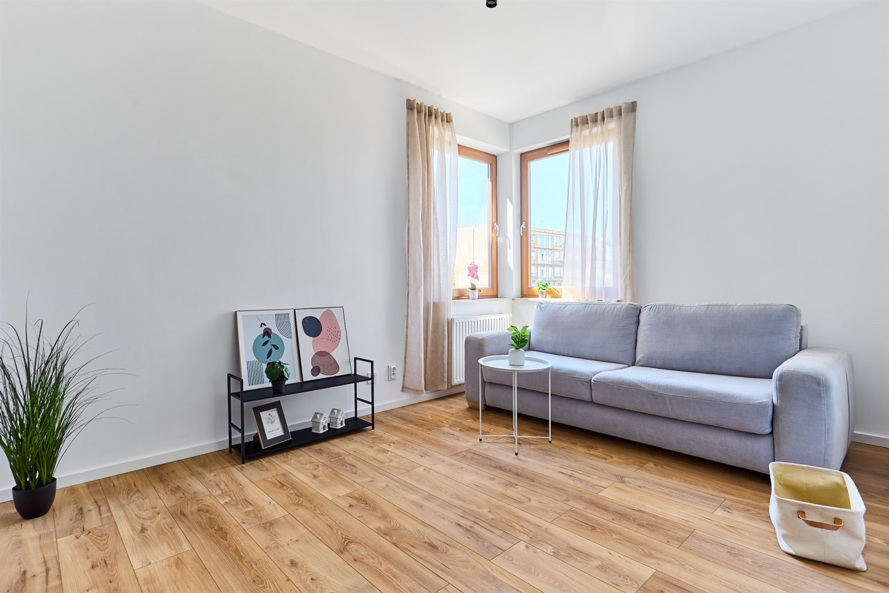 Mieszkanie znajduje się na pierwszym piętrze w niskim, kameralnym budynku z windą. Wyróżnia się funkcjonalnym układem i doskonałą lokalizacją.