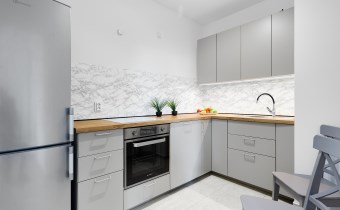 - Oddzielna kuchnia: W pełni wyposażona – idealne rozwiązanie dla tych, którzy nie lubią aneksów w salonie.