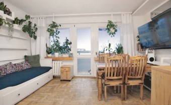 - salon z aneksem kuchennym i wyjściem na balkon