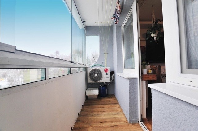 - balkon zabudowany szybami bezramowymi (rozsuwany)