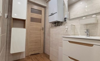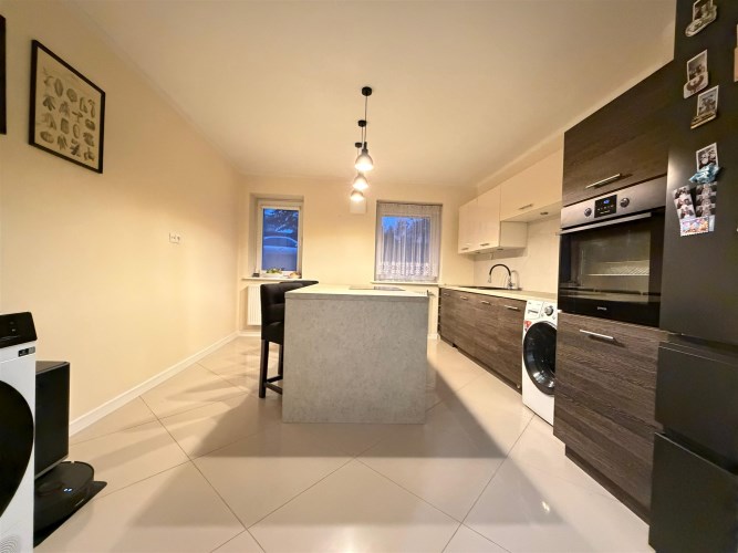 Mieszkanie jest w bardzo dobrym stanie, remontowane zaledwie kilka lat temu. Na podłogach są kafle i deska barlinecka, okna PCV, ściany gładzone malowane. W mieszkaniu jest zainstalowana rekuperacja ścienna, co gwarantuje zawsze świeże powietrze w mieszkaniu.