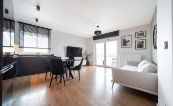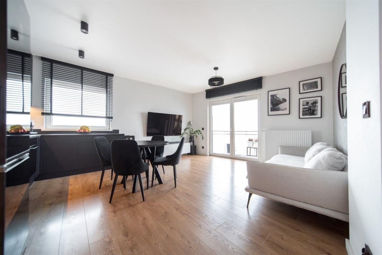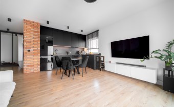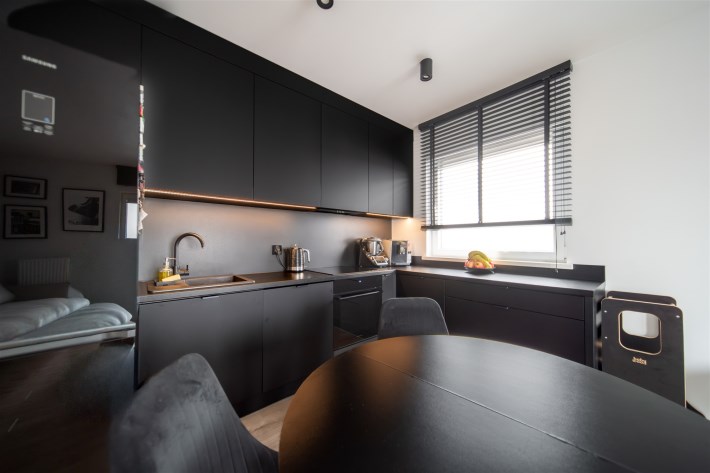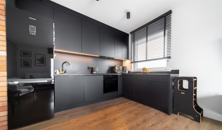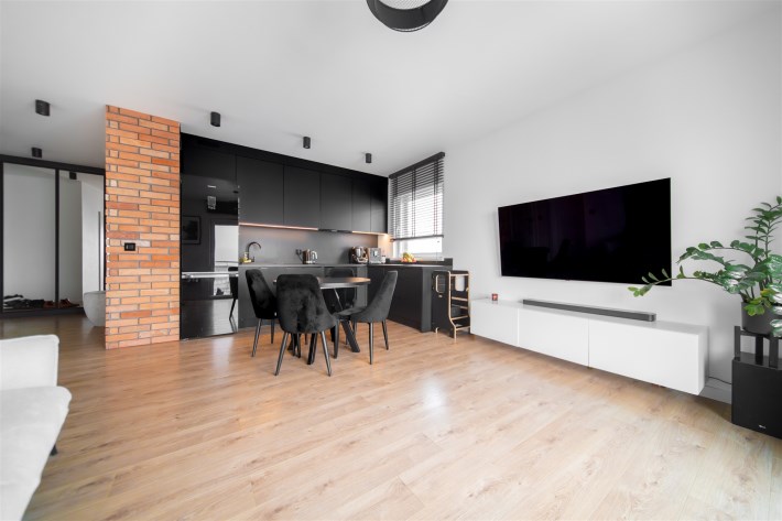 Nowoczesne oświetlenie, spore poczucie przestrzeni, zabudowy prawidłowo wykorzystujące oferowaną przestrzeń.