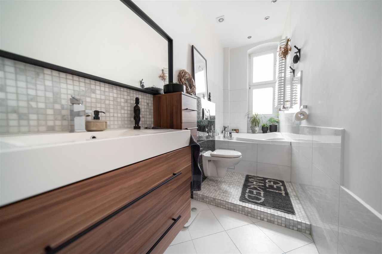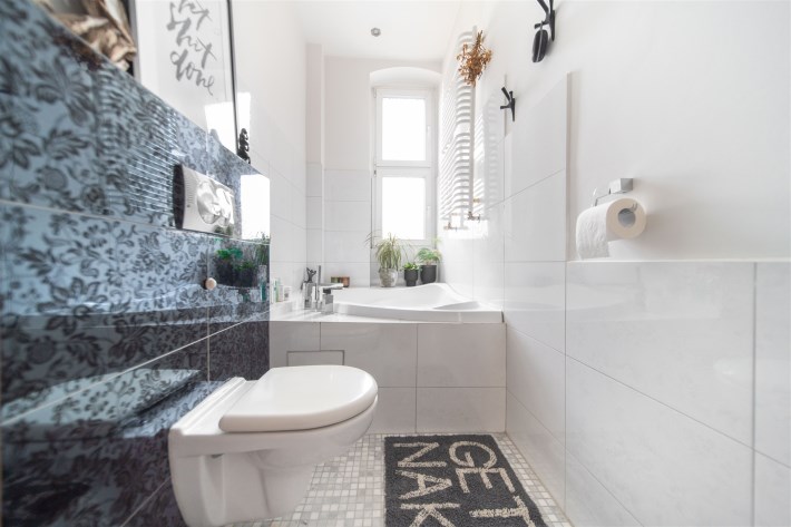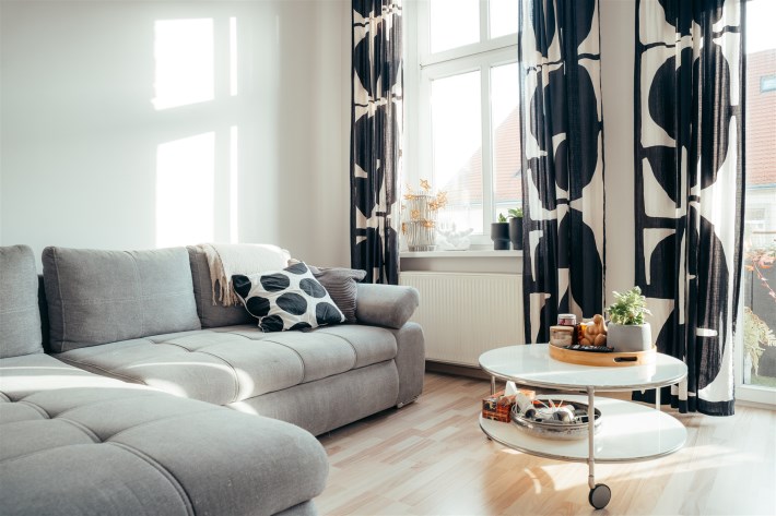 Za sprawą dużej ilości wysokich okien oraz ekspozycji względem stron świata mieszkanie jest bardzo słoneczne. Dzięki sporej odległości od pozostałej zabudowy mieszkalnej nie mamy sąsiadów, którzy zaglądają nam w okna.