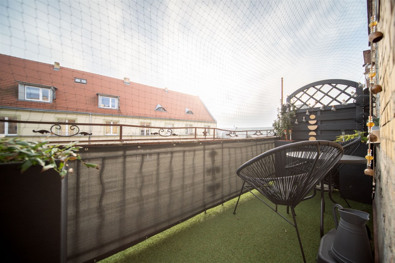 Kolejnym atutem nieruchomości jest duży balkon, do którego dostęp mamy z salonu.