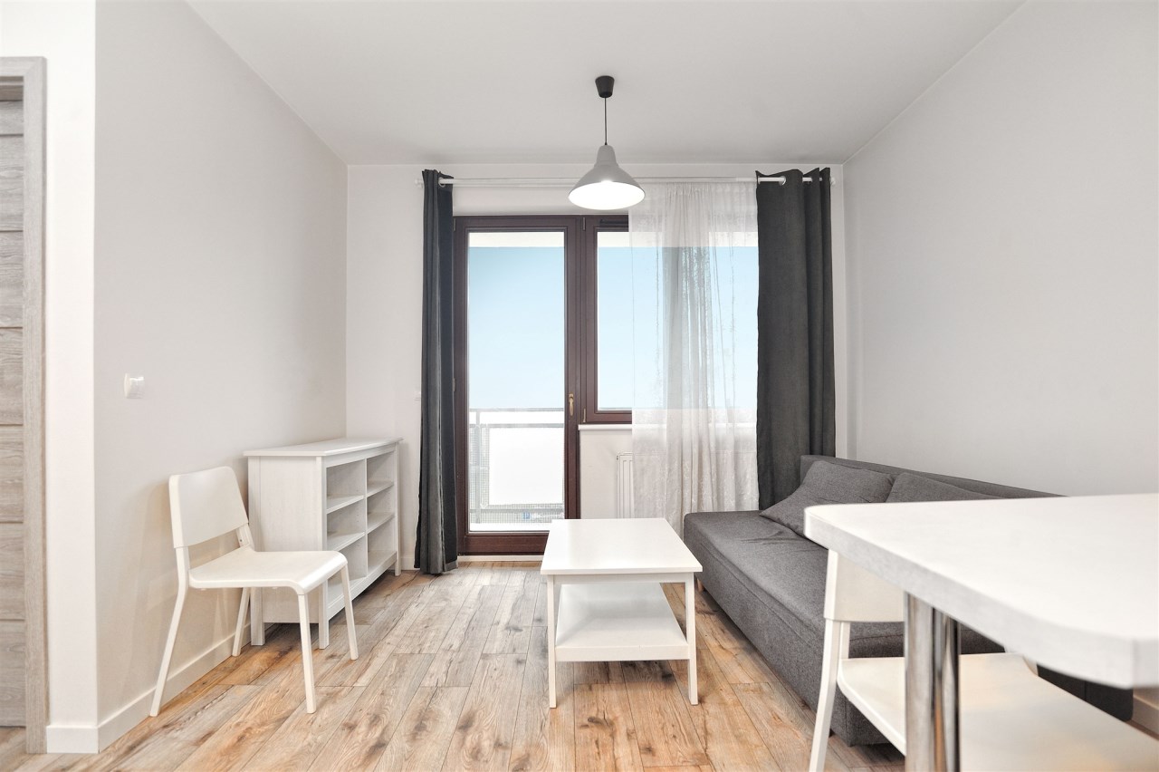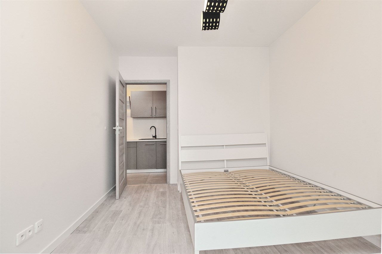 Na I poziomie, hol, pokój dzienny z aneksem kuchennym, sypialnia oraz łazienka z wanną.
