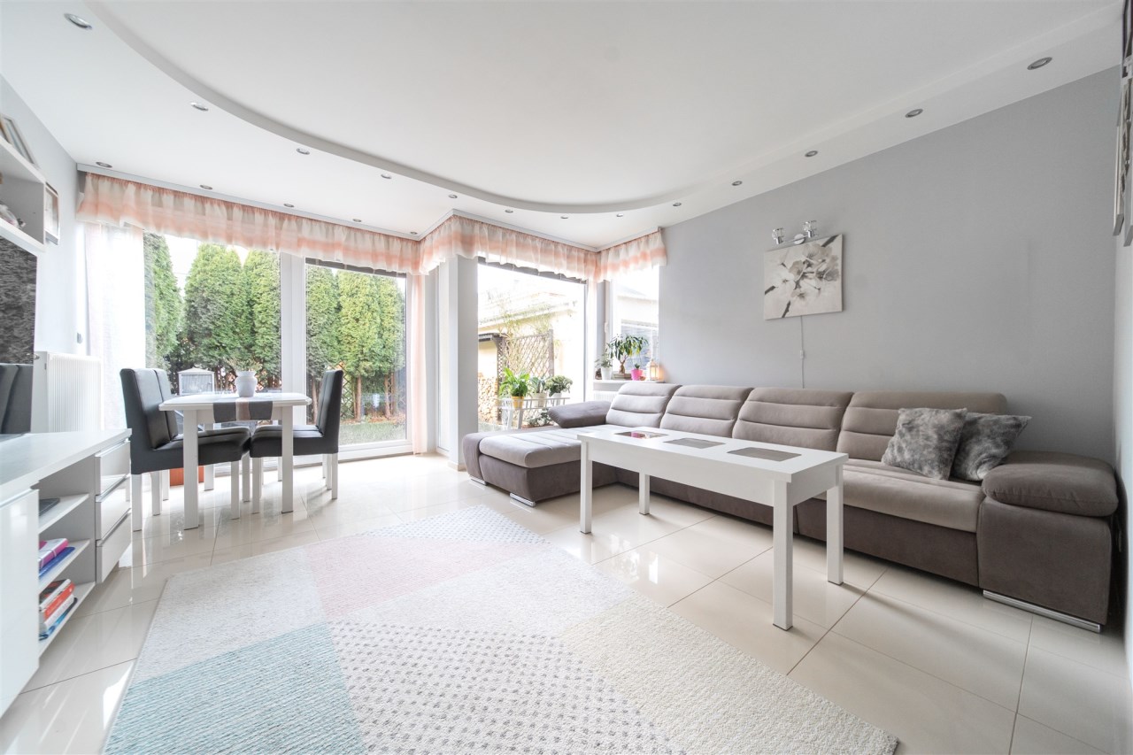 Na sprzedaż dwupoziomowe mieszkanie z ogródkiem w czterorodzinnym szeregowcu na zamkniętym strzeżonym osiedlu Bursztynowe w Warzymicach.Lokal narożny z samodzielnym wejściem do mieszkania.