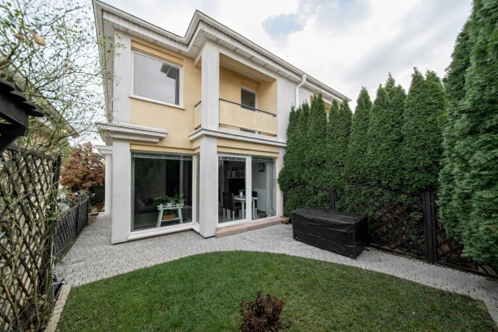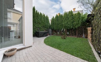 Ogród o powierzchni około 50 m² został starannie zagospodarowany i utrzymany w spójnym, estetycznym stylu. Znajduje się tu zadbany trawnik, szpaler tui zapewniający naturalną osłonę oraz funkcjonalna drewutnia. Przestrzeń ta stanowi komfortowe miejsce do relaksu i wypoczynku, a dzięki odpowiedniemu usytuowaniu oraz bujnej roślinności oferuje wysoki poziom prywatności i intymności.