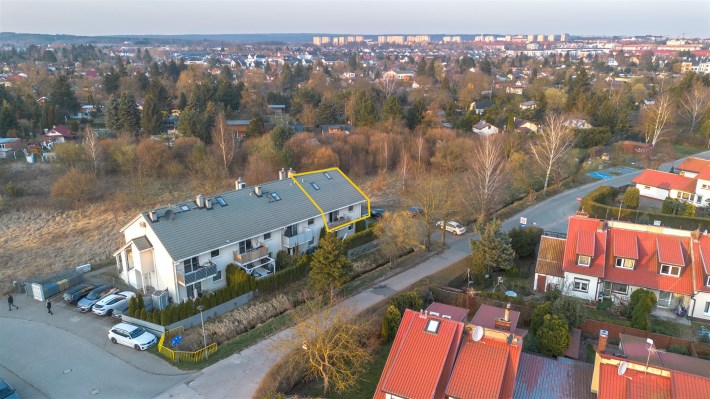Dwupoziomowe mieszkanie o powierzchni użytkowej 81,7 m², położone na 1. piętrze nowoczesnej zabudowy wielorodzinnej z 2017 roku, w Mierzynie przy ul. Zacisznej 30. Lokal usytuowany jest w skrajnym segmencie szeregowca, co zapewnia kameralny charakter i większą prywatność.