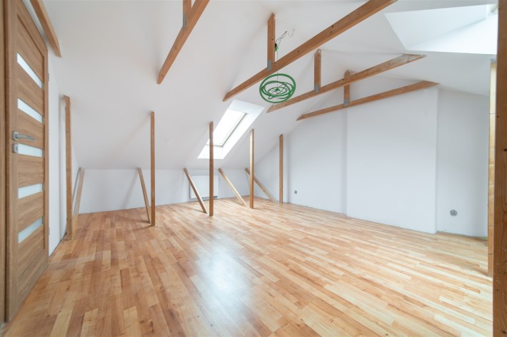 Skosy na drugim poziomie są nieuciążliwe i nie ograniczają ustawności pomieszczeń.