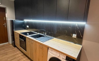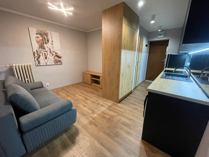 Kawalerka jest w pełni umeblowana, wraz ze sprzętami AGD.