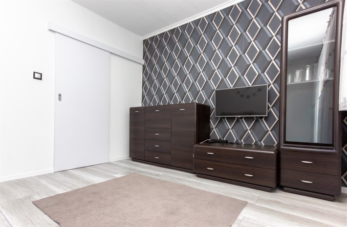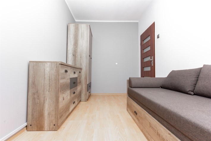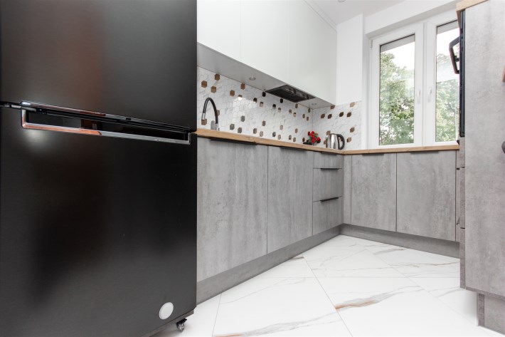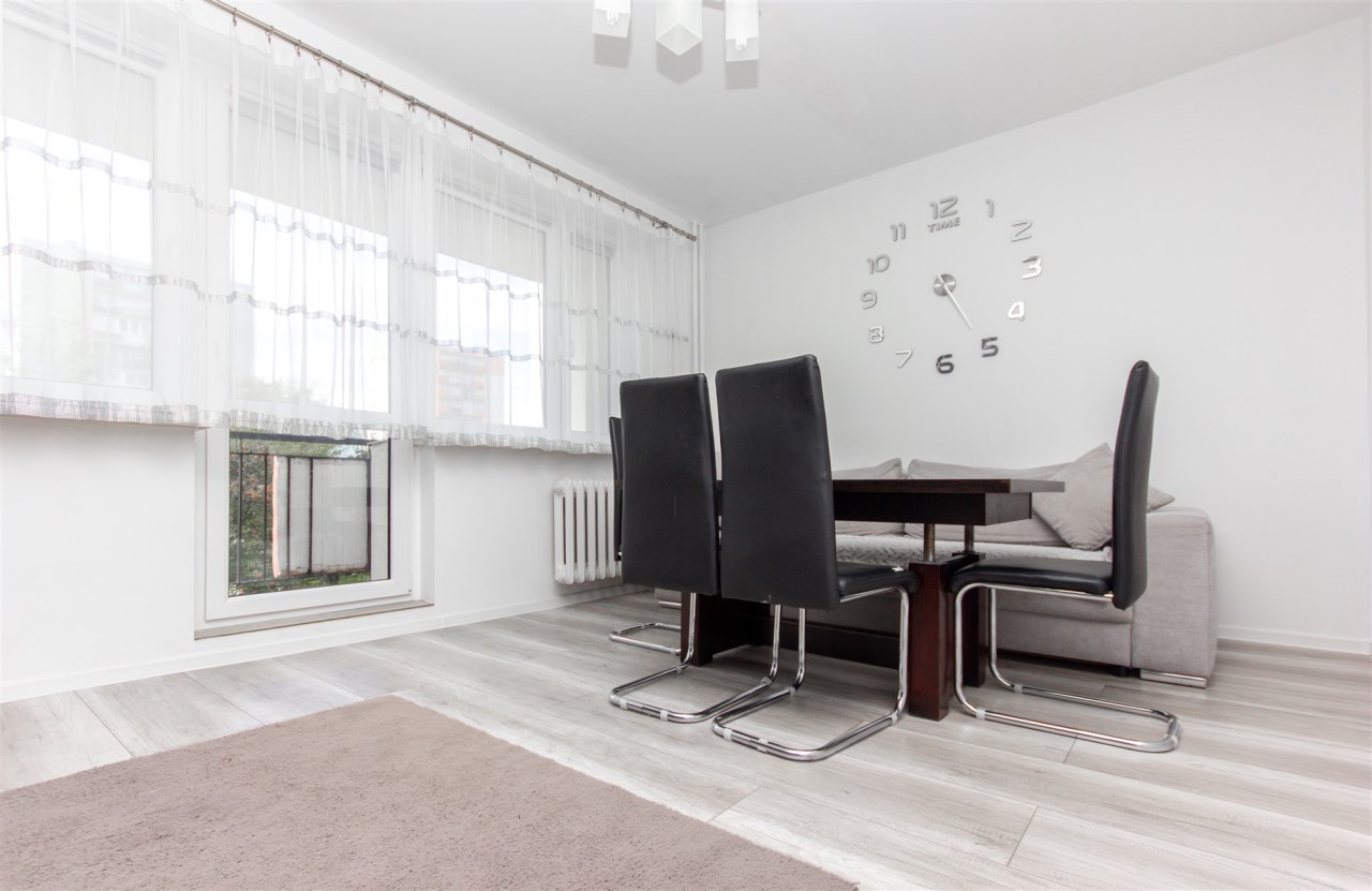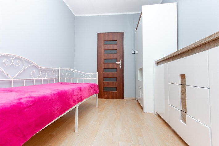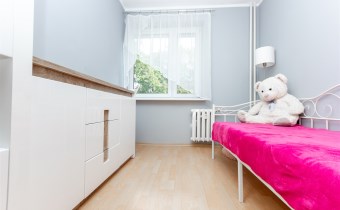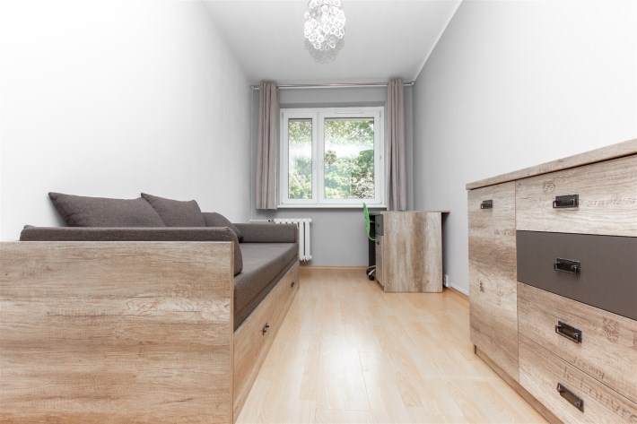 Mieszkanie składa się z trzech pokoi – dużego, przestronnego salonu oraz dwóch oddzielnych pokoi, które doskonale sprawdzą się jako sypialnie, gabinet lub pokój dla dziecka. Kuchnia jest oddzielna i w pełni wyposażona. Znajduje się w niej lodówka, zmywarka, mikrofalówka oraz piekarnik. Kuchnia posiada pojemne szafki, duży blat roboczy oraz wygodny barek śniadaniowy, który dodaje wnętrzu funkcjonalności i komfortu.