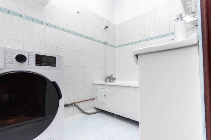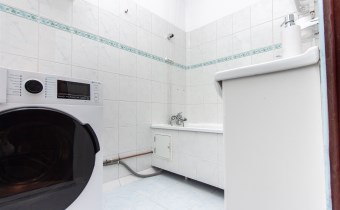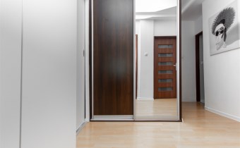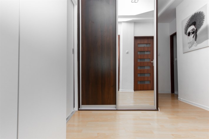 W mieszkaniu znajduje się łazienka z pralką oraz wanną, a także osobna toaleta. Do dyspozycji są również dwie duże szafy w zabudowie – jedna w holu, druga w przedpokoju – zapewniające dużo miejsca do przechowywania. Dodatkowym atutem jest przestronny balkon z widokiem na drzewa, który daje poczucie prywatności i spokoju.