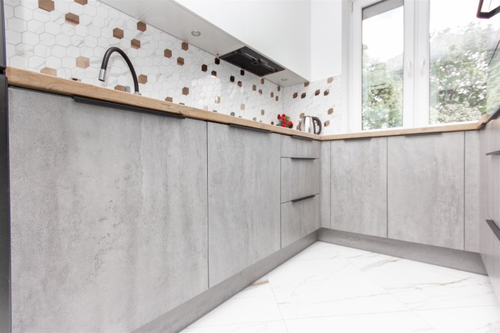 Mieszkanie składa się z trzech pokoi – dużego, przestronnego salonu oraz dwóch oddzielnych pokoi, które doskonale sprawdzą się jako sypialnie, gabinet lub pokój dla dziecka. Kuchnia jest oddzielna i w pełni wyposażona. Znajduje się w niej lodówka, zmywarka, mikrofalówka oraz piekarnik. Kuchnia posiada pojemne szafki, duży blat roboczy oraz wygodny barek śniadaniowy, który dodaje wnętrzu funkcjonalności i komfortu.
