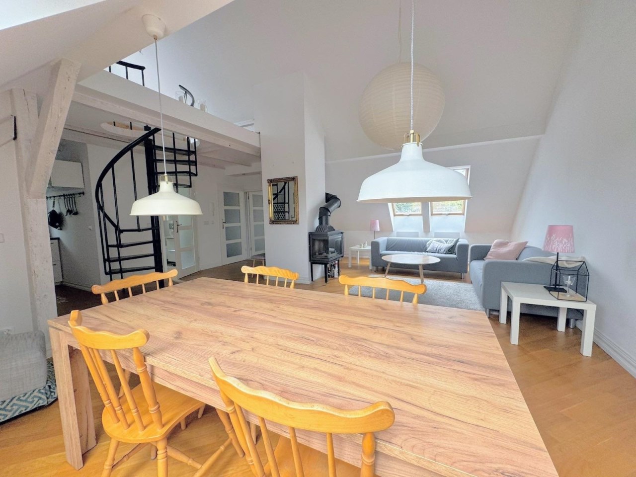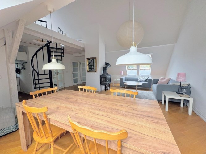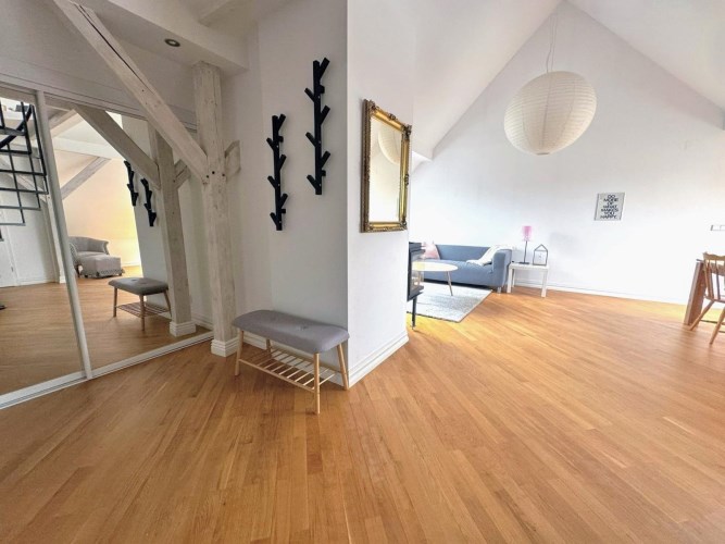 Lokal oferuje 52 m² powierzchni po podłodze, co przekłada się na funkcjonalną przestrzeń mieszkalną z charakterystycznymi skosami, nadającymi wnętrzu niepowtarzalny klimat. Dodatkowym atutem jest antresola o powierzchni ok. 10 m², idealna jako sypialnia, strefa relaksu lub miejsce do pracy.