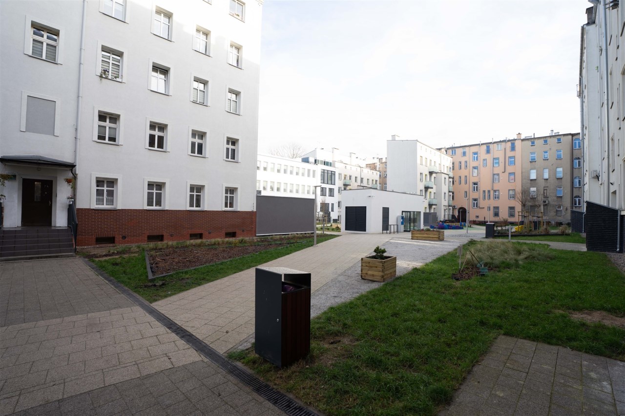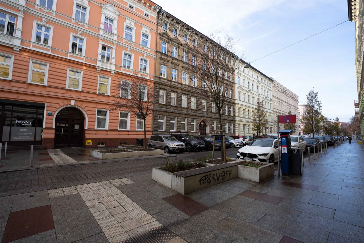 Ogromnym atutem mieszkania jest jego położenie. Znajduje się przy odnowionej ulicy Małkowskiego w drugiej linii zabudowy. Pod koniec października został tam oddany do użytku podziemny parking, tak więc problem z parkowaniem auta praktycznie nie istnieje. Ulica jednokierunkowa. Bliskość przystanków komunikacji miejskiej oraz sklepów.