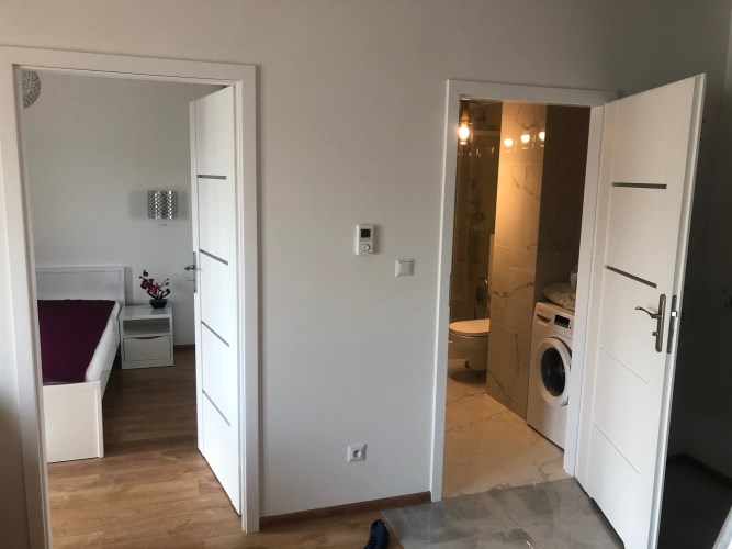Mieszkanie zostało zaprojektowane z dbałością o każdy detal i wykończone materiałami wysokiej jakości. Składa się z przytulnej sypialni z dużym łóżkiem (160x200), pojemną szafą oraz stolikami nocnymi, a także przestronnego salonu połączonego z funkcjonalnym aneksem kuchennym.