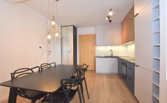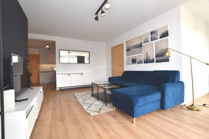 Na powierzchnię 70.30 m2 znajdziemy aneks kuchenny połączony z jadalnią, salon z miejscem do nauki lub pracy z wyjściem na balkon, dwie sypialnie oraz łazienkę razem z WC.