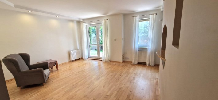 Na powierzchnię 83m2 składa się przestronny salon z wyjściem na 200m2 ogród, 2 sypialnie, kuchnia oraz łazienka wraz z wc. Mieszkanie jest odświeżone, pomalowano ściany oraz wymieniono wykładziny, w pełni umeblowane.