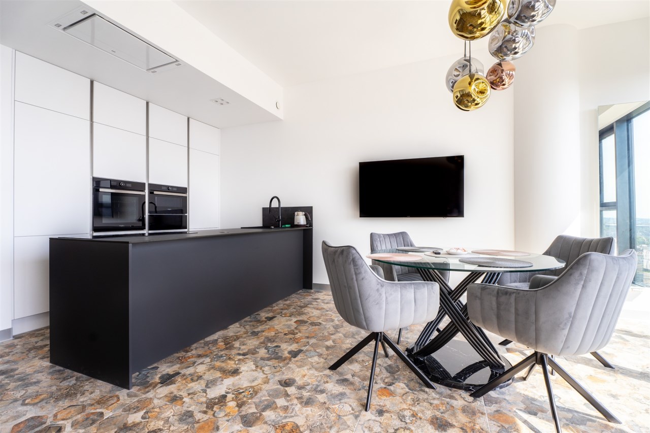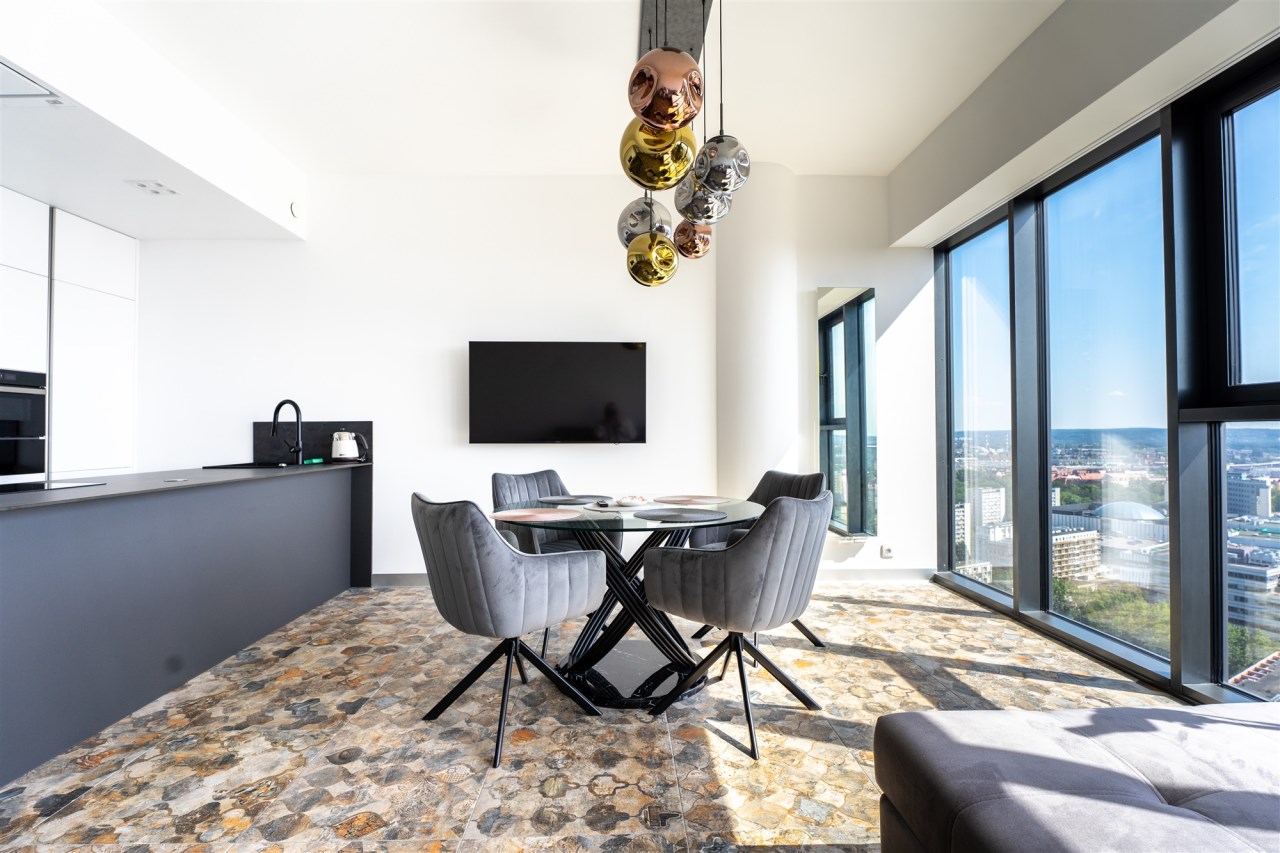 Oferta wynajmu 59 m2 apartamentu w Hanza Tower na 22 piętrze z przepięknym i niepowtarzalnym widokiem na panoramę Szczecina. Mieszkanie wykończone jest w nowoczesnym i spójnym stylu. Wyjątkowo jasne z uwagi na ogromne szklane ściany będące cechą charakterystyczną całego budynku.Mieszkanie składa się z: